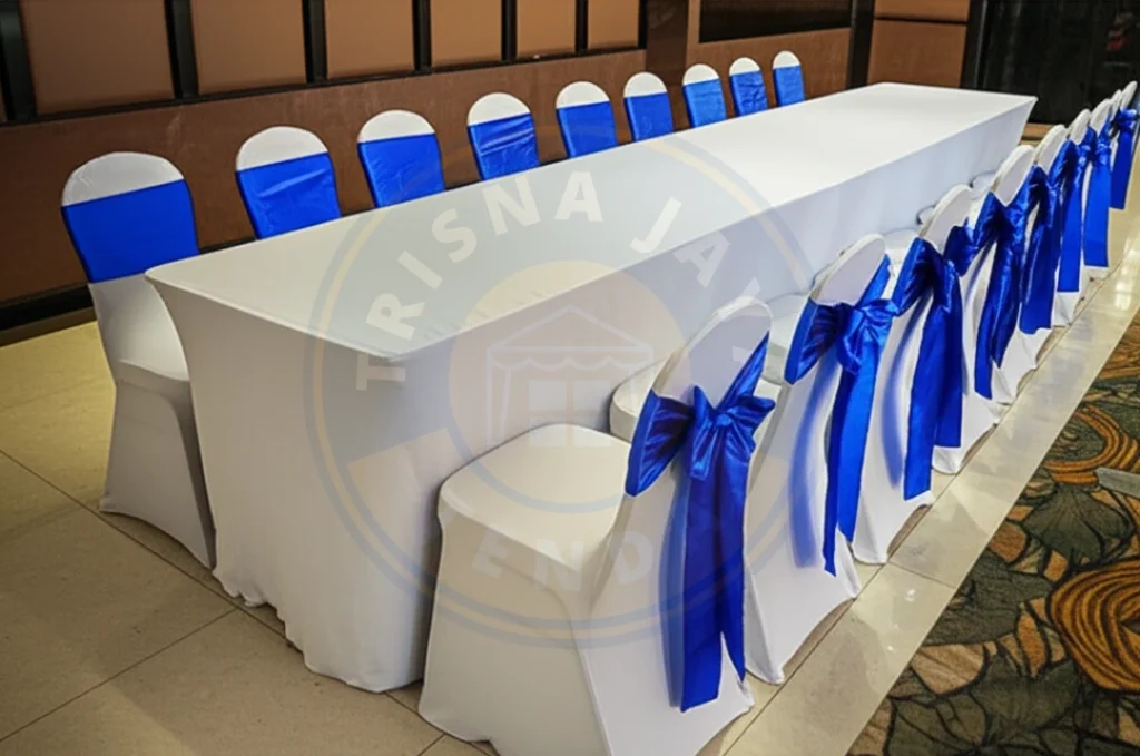 Trisna Jaya Tenda adalah spesialis konveksi sarung kursi dan cover meja pesta berkualitas. Kami memproduksi sarung kursi Futura, sarung kursi Chitose, sarung kursi plastik, sarung kursi Napolly serta cover meja dekorasi seperti cover meja bundar dan cover meja ketat untuk berbagai acara dengan hasil rapi dan bahan berkualitas. Desain bisa custom ukuran, warna, dan model sesuai tema acara. Jahitan rapi, bahan premium, dan cocok untuk pemakaian pribadi, acara hajatan, EO, WO, maupun lembaga.